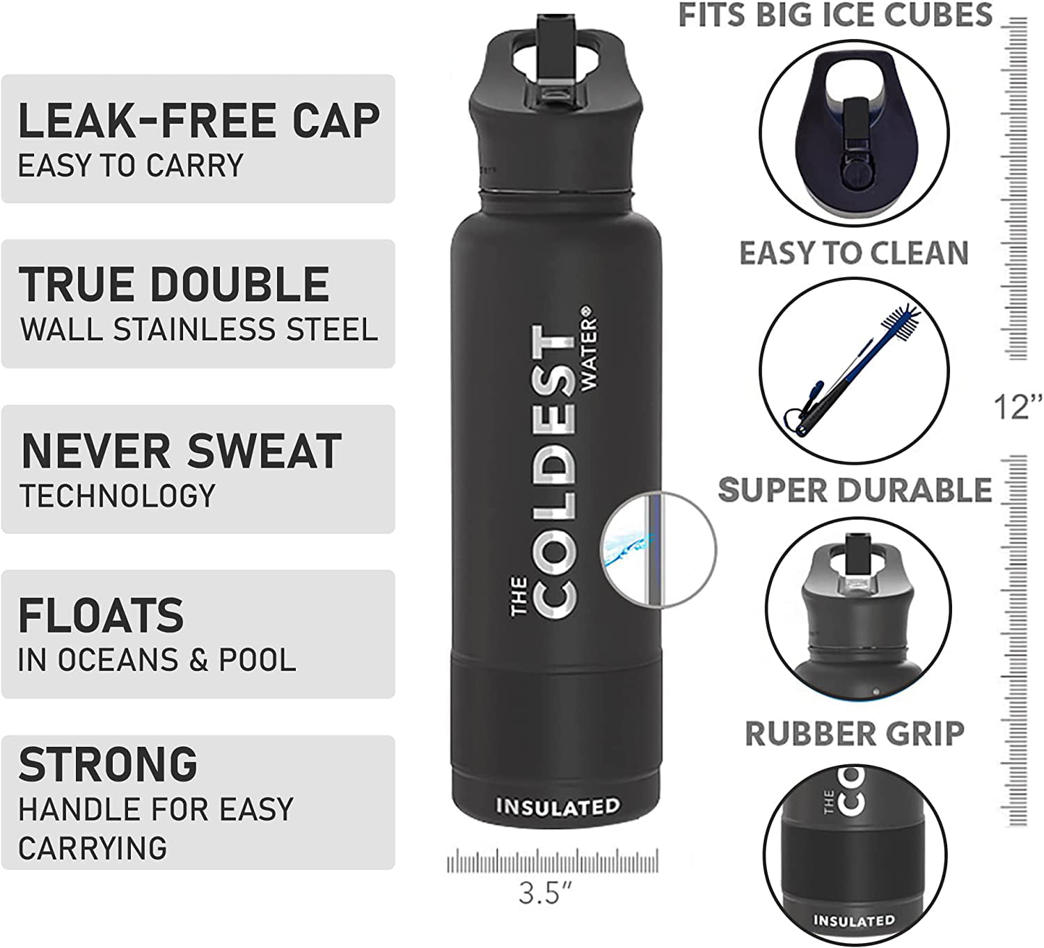 Coldest Sports Water Bottle 40 Oz Straw Lid Leak Proof Vacuum Insulated Stainless Steel Hot Cold Double Walled Thermo Mug Metal Canteen 40 Oz Green Walmart Com